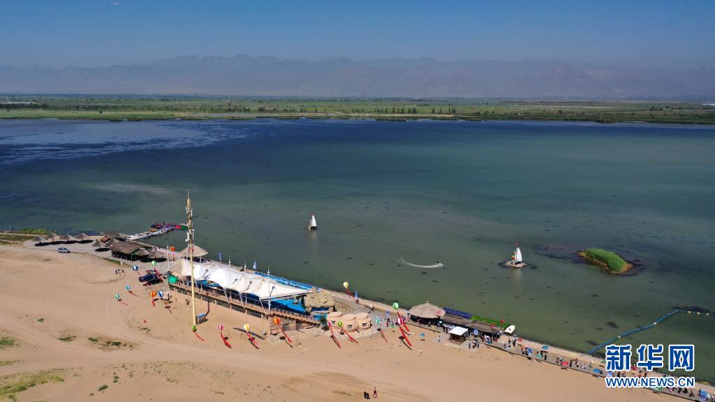 夏日时节,地处宁夏石嘴山市平罗县的沙湖景区内,苇绿沙黄、碧波荡漾。集荒漠、草原、湿地、湖泊等生态系统为一体的沙湖景区,享有“中国十大魅力湿地”称号,以其半沙半湖的独特自然风光享誉国内外。新华社记者 王鹏 摄