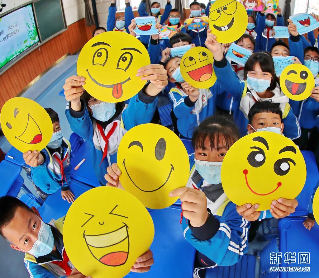 5月8日是“世界微笑日”,各地学校组织学生们开展迎接“世界微笑日”活动。新华社发(张驰 摄)