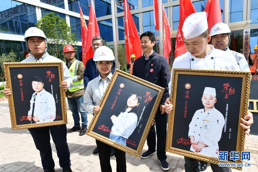 当日,由北京市总工会主办的“首都劳动者微笑迎‘五一’暨创新实干勇争先劳动竞赛”,在北京建工集团地铁歇甲村车辆段项目部举行,参与北京市轨道交通建设的劳动者获赠自己的微笑照片,迎接属于自己的节日。新华社记者 金良快 摄