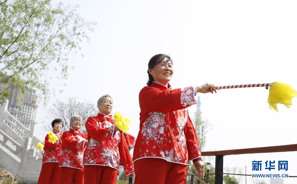 4月6日,邢台市襄都区府前街社区居民在家门口的五一桥公园休闲娱乐。