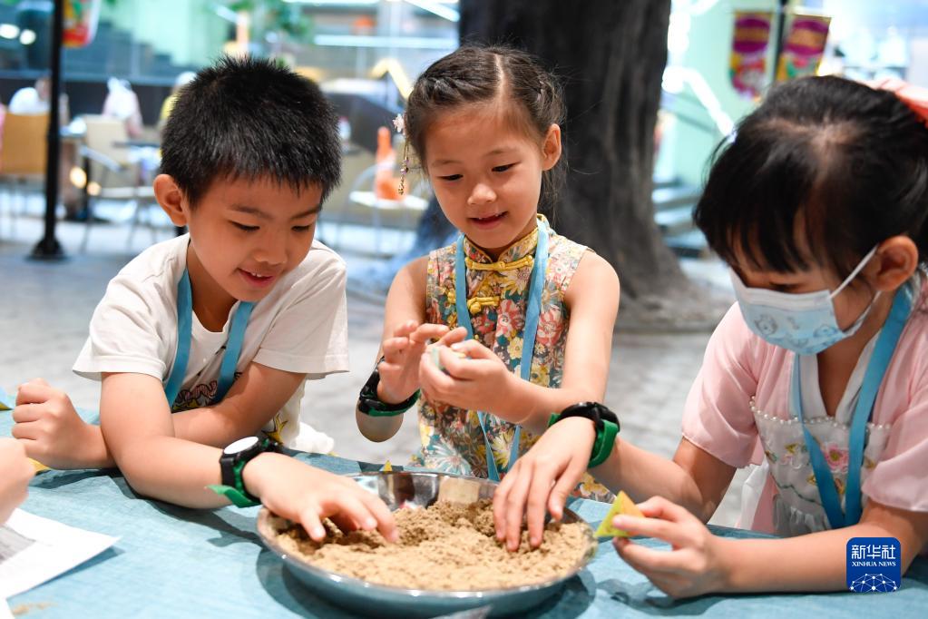 10月3日,小朋友在杭州青少年发展中心“Do都城”举办的“传华夏文化 通古今未来”主题活动中体验制作香囊。