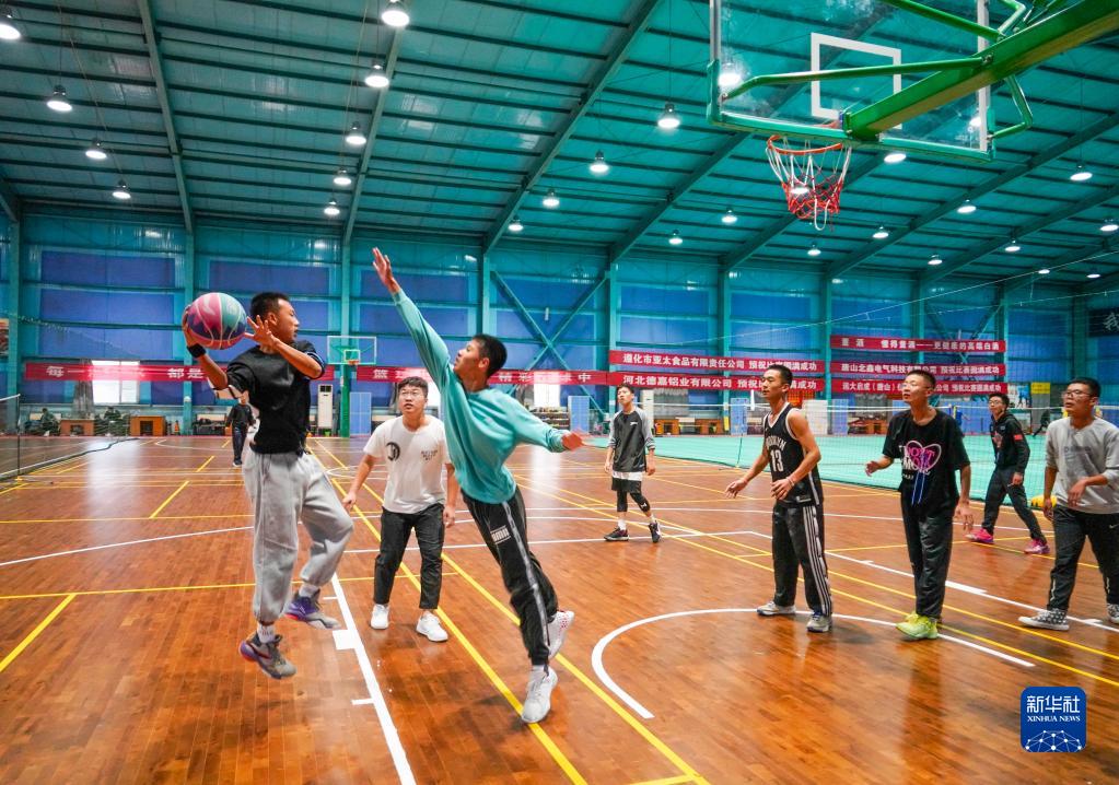 10月6日,河北省遵化市几名篮球爱好者在一家篮球场打篮球。