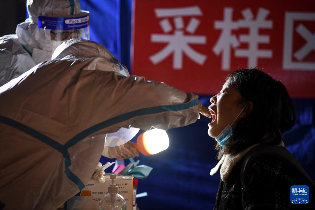 近日,宁夏发生新一轮新冠肺炎疫情。入夜,银川市街头气温持续下降,各个集中采样点依旧灯火通明,从日暮到夜深,这些奋战在抗疫一线的工作人员为抗疫寒夜点亮光芒。 新华社记者 冯开华 摄pagebreak