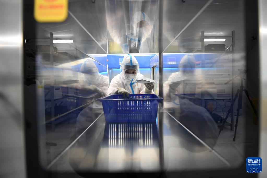 “猎鹰号”硬气膜实验室工作人员普臣惠在样本处理区作业。