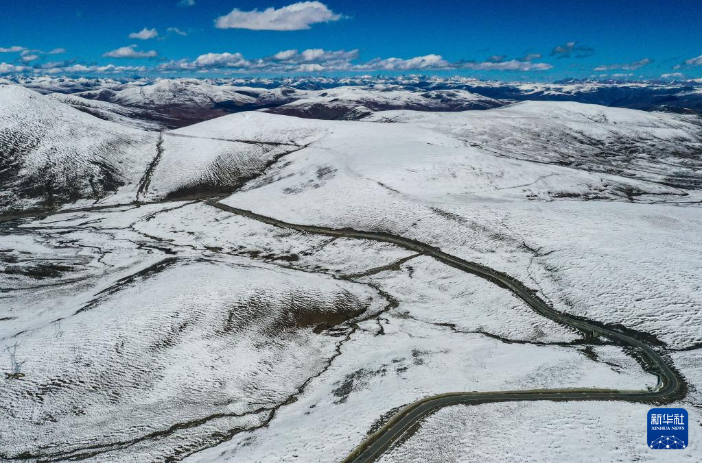 10月24日在四川省甘孜藏族自治州白玉县境内拍摄的公路(无人机照片)。