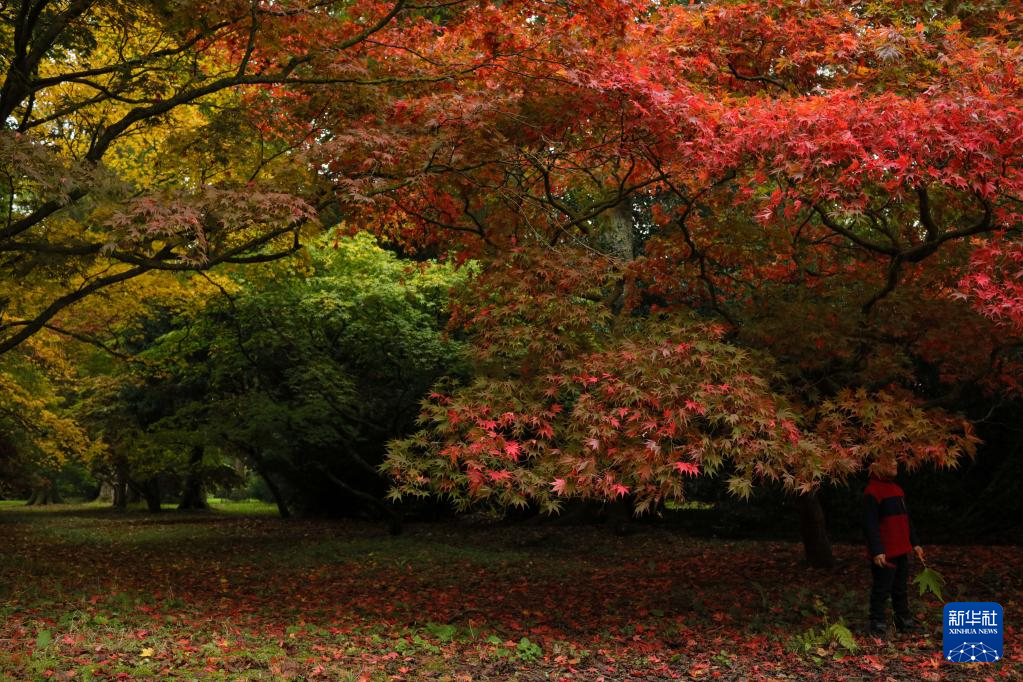 10月27日,游客在英国格洛斯特郡的韦斯顿伯特植物园欣赏秋景。 新华社发(蒂姆·爱尔兰摄)