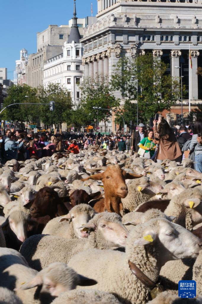 当日,一年一度的移牧节在马德里举行。在西班牙,每当季节由夏至冬逐渐转换时,牧人会赶着成千上万绵羊、牛和其他牲畜从凉爽的高原牧场向地势较低的草地迁移,形成数条传统游牧路线。 新华社记者 孟鼎博 摄