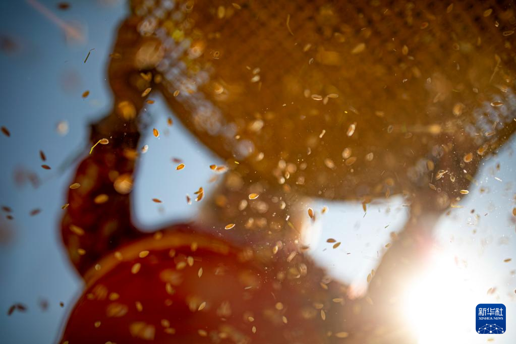 10月22日,在尼泊尔勒利德布尔,一名农民在稻田中扬谷。 新华社发(苏拉韦·什雷斯塔摄)pagebreak