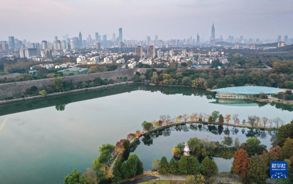 11月16日,晨曦中的南京前湖公园(无人机照片)。