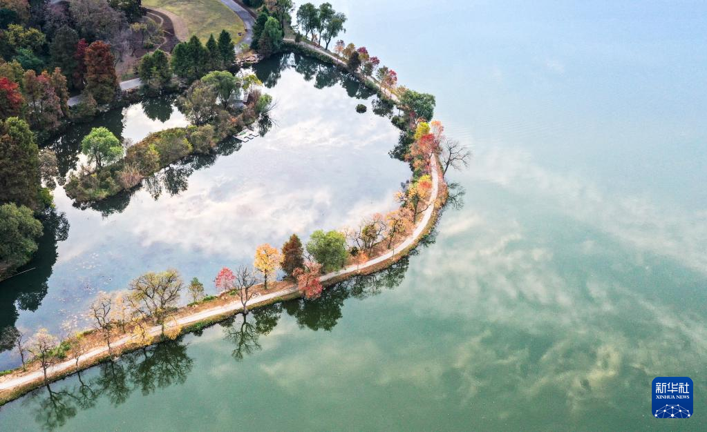 11月16日,南京市紫金山麓的前湖公园,水天一色,湖面似镜,树色斑斓,美如画卷。新华社记者 杨磊 摄