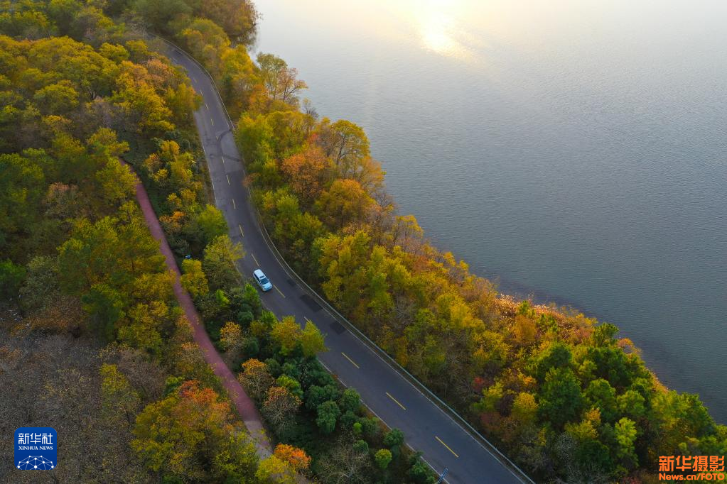 初冬时节,江苏省盱眙县天泉湖色彩斑斓,碧水与红杉相映成趣,构成一幅美丽的冬日生态画卷。新华社记者 季春鹏 摄