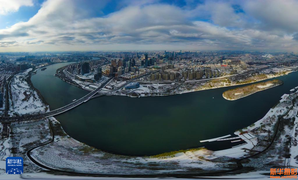 11月11日拍摄的沈阳市浑河两岸雪景(无人机照片)。