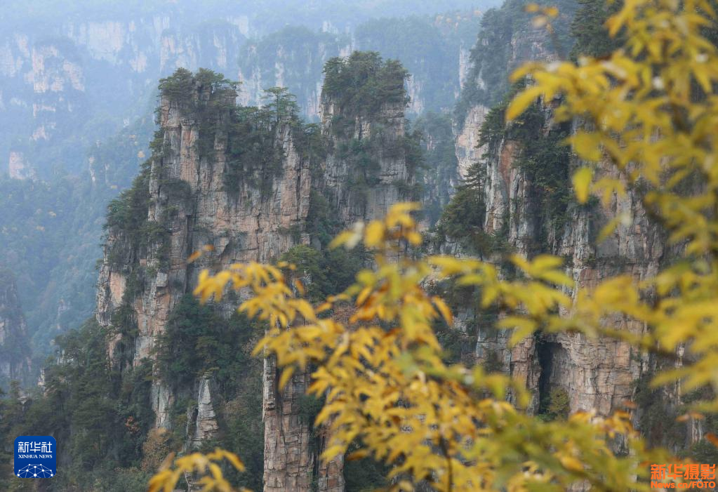 眼下,在湖南张家界武陵源,连绵的峰林色彩斑斓,景色迷人。新华社发(吴勇兵摄)
