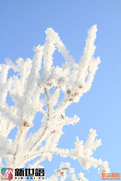 黑龙江省黑河市出现雾凇奇观。我国冬季大雪节气后雾凇景观越来越多,雾凇是一种自然奇观,让游人和摄影人惊喜不已。雾凇是低温时空气中水汽直接凝华,或过冷雾滴直接冻结,在物体上的乳白色冰晶沉积物。雾凇美景宛如白雪公主童话世界。新世语/林进春(声明:凡带有水印的图片,系版权图片,受法律保护,未经许可请勿转载。)pagebreak