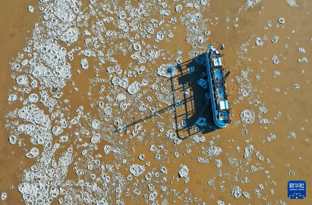 近日,随着气温下降,黄河内蒙古段出现流凌景观。
