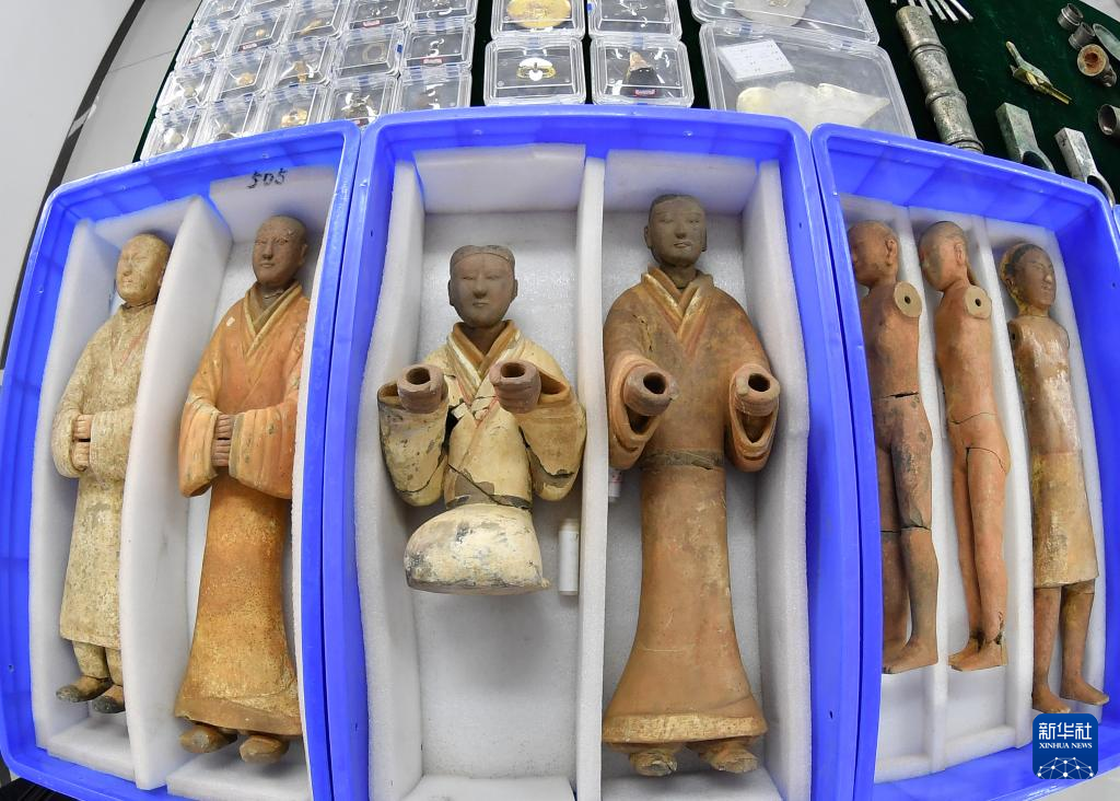 这是江村大墓与薄太后南陵出土的彩绘陶俑(12月16日摄,鱼眼镜头拍摄)。
