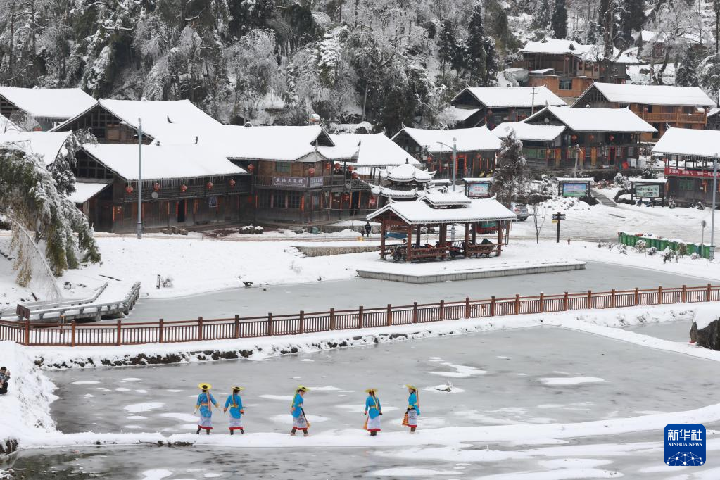 2月3日,游客在湖南省邵阳市隆回县虎形山瑶族乡大花瑶景区游玩。