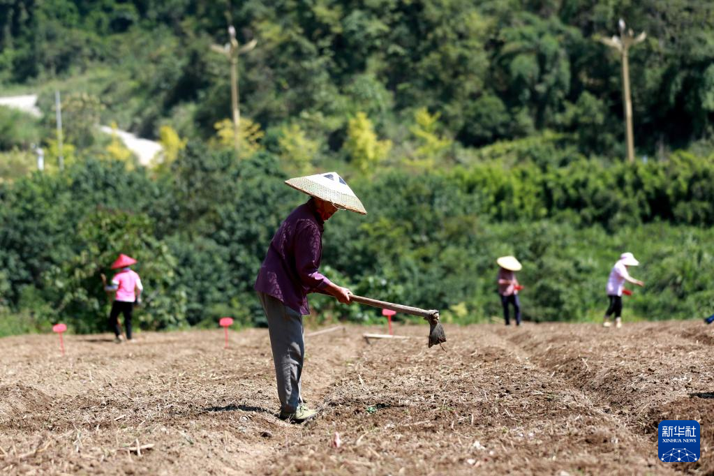 9月18日,贵州省黔南布依族苗族自治州都匀市小围寨街道马尾村的村民在播种油菜种子。