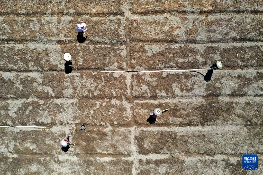 9月18日,贵州省黔南布依族苗族自治州都匀市小围寨街道马尾村的村民在播种油菜种子(无人机照片)。