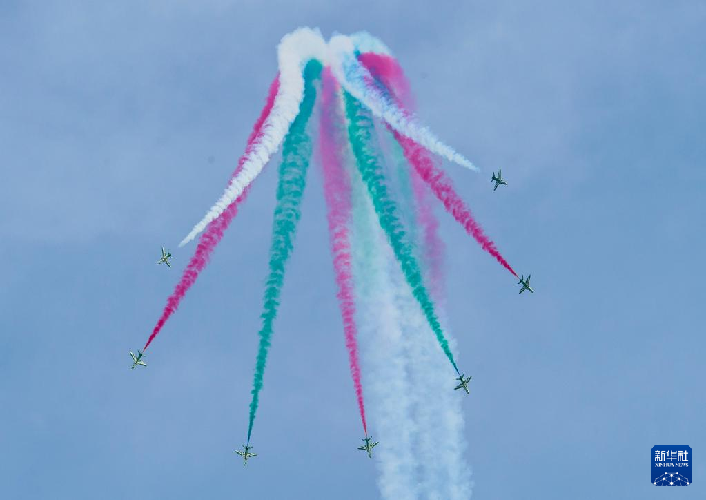 11月5日,沙特空军猎鹰飞行表演队在卡塔尔首都多哈进行飞行表演。