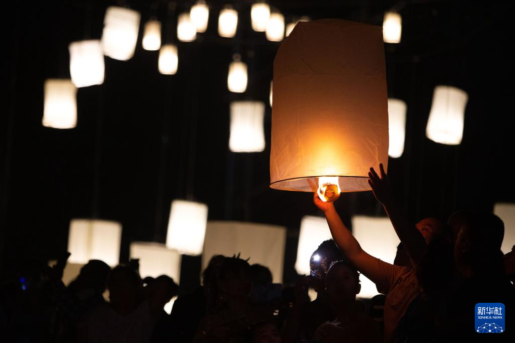 当日,泰国清迈举办燃放孔明灯活动,人们通过放飞孔明灯祈福许愿。