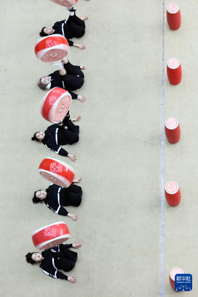 3月31日,在江苏省盐城市建湖县,杂技演员王梦尘练习《炼——倒立技巧》,她凭借这一节目摘得中国杂技比赛最高奖“金菊奖”。