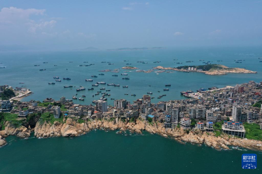 8月16日,在福建省福州市连江县海域,渔船前往外海捕捞作业(无人机照片)。