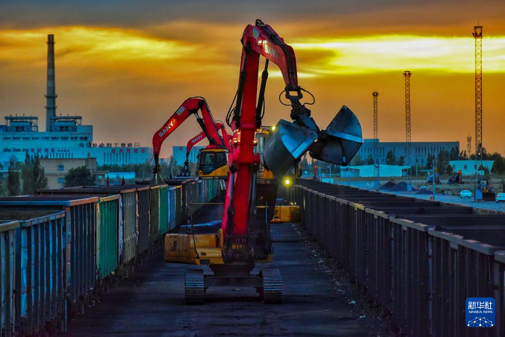 9月6日,霍尔果斯站换装库换十线抓料机对散堆装货物换装作业。