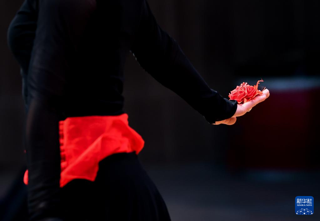 新疆塔县文工团舞蹈演员古丽巴努尔·库尔恰克在排练《花儿为什么这样红》(9月4日摄)。