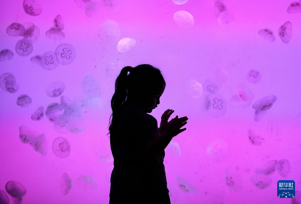 10月5日,小朋友在辽宁省沈阳海洋探索中心游览。