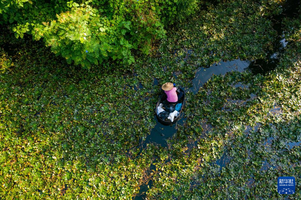 近期,浙江省湖州市吴兴区东林镇的莲藕、菱角等水乡特色农产品迎来丰收,农户们趁着秋日好天气进行采收。