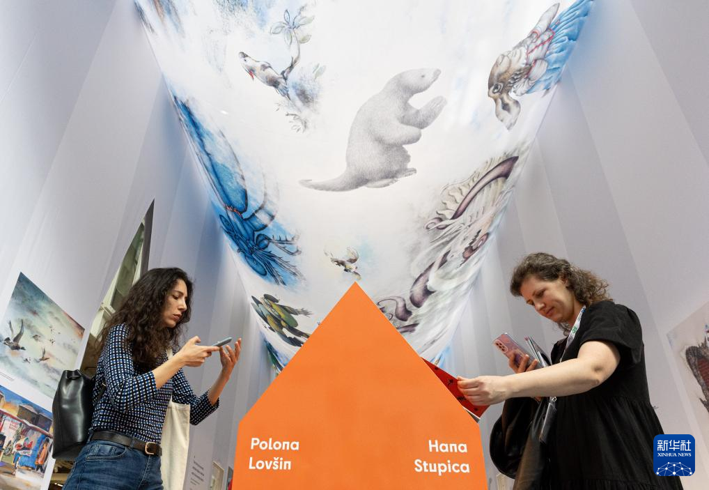 4月8日,在意大利博洛尼亚举行的第61届博洛尼亚国际童书展上,人们在主宾国斯洛文尼亚展区参观。