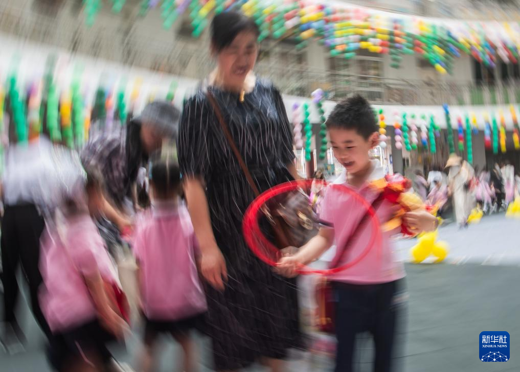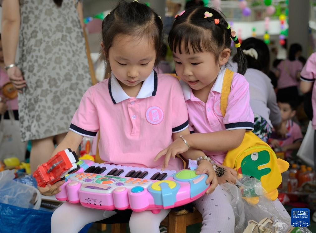 5月31日,位于武汉市洪山区的华中师范大学幼儿园组织亲子游园会、爱心义卖、画展等活动。这是小朋友们在活动现场玩耍。