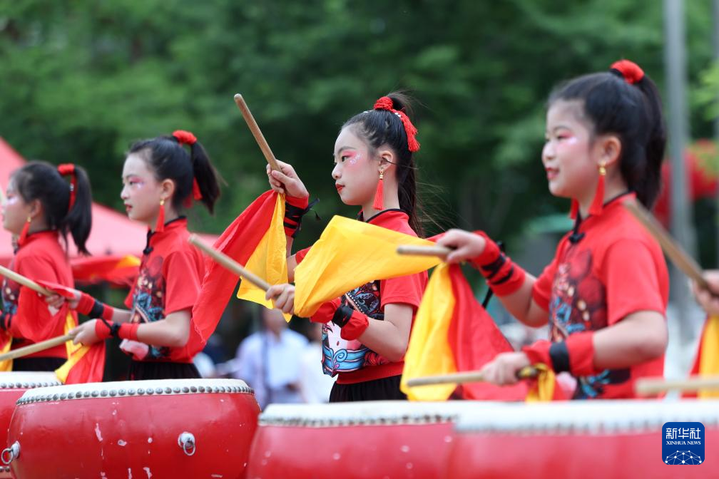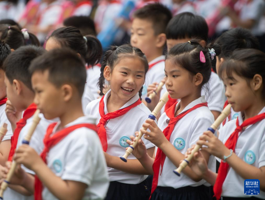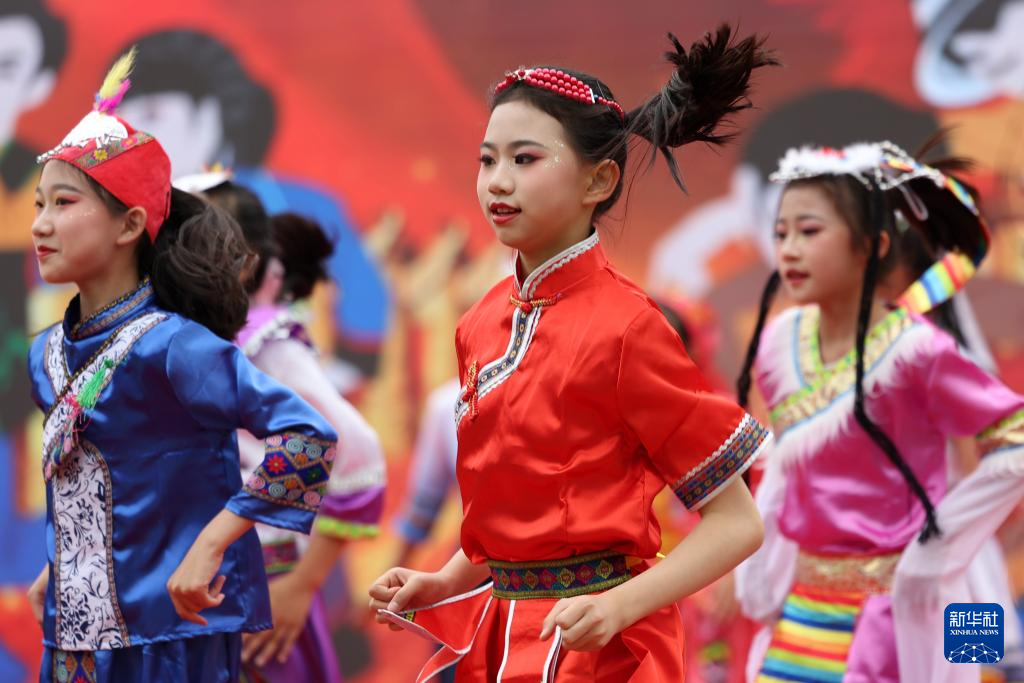 5月31日,在湖北省武汉市万松园路小学,孩子们在演出。
