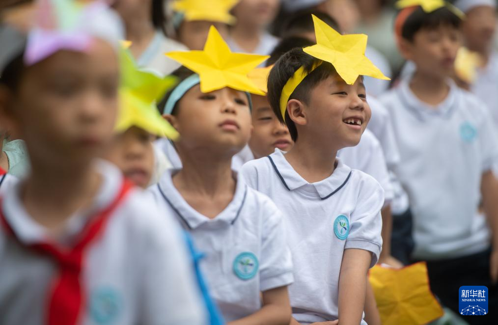 5月31日,在湖北省武汉市万松园路小学,孩子们在观看表演。