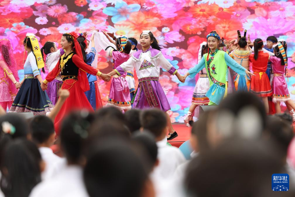 5月31日,甘肃省兰州市东郊学校的小学生在文艺活动上演出。