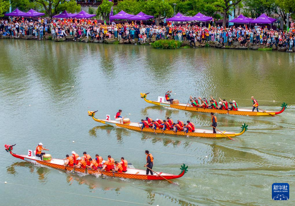 端午节临近,各地举行龙舟赛、龙舟巡游等活动,迎接传统节日的到来。