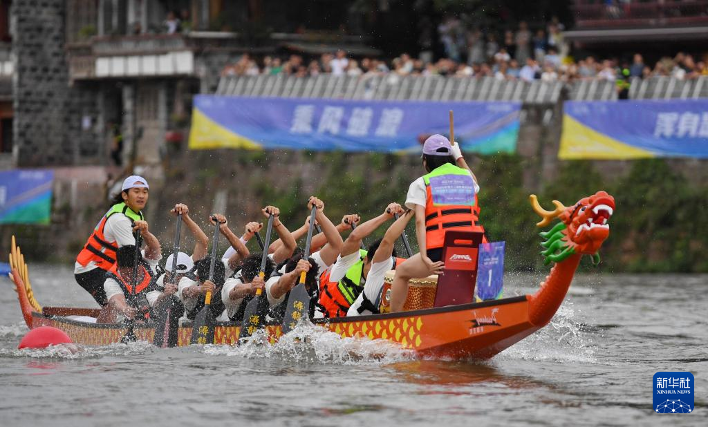 端午节临近,重庆市酉阳土家族苗族自治县龙潭镇举行划龙舟比赛,吸引来自湖北、重庆等地的15支队伍参加角逐。