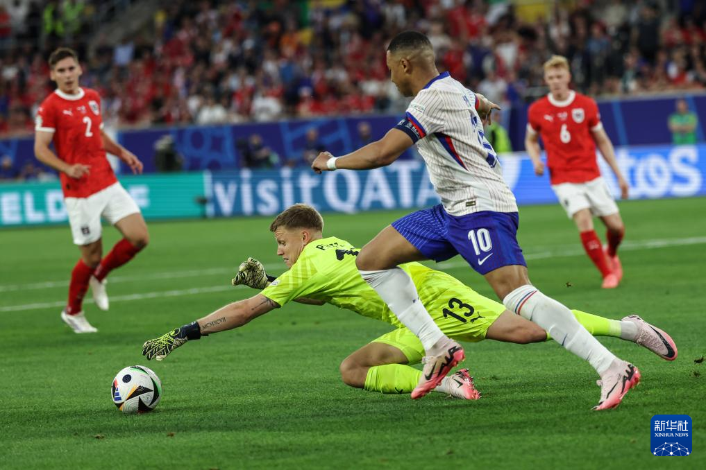 当日,在德国杜塞尔多夫进行的2024欧洲足球锦标赛D组首轮比赛中,法国队1比0战胜奥地利队。
