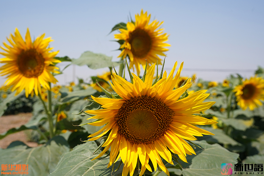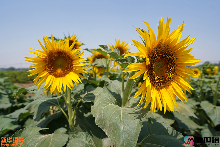近日,河北邢台市平乡县农田中的油葵花相继开放,油葵花如同一张张笑脸成为夏日里一道靓丽的风景线。新世语/范钦龙(声明:凡带有水印的图片,系版权图片,受法律保护,未经许可请勿转载。)