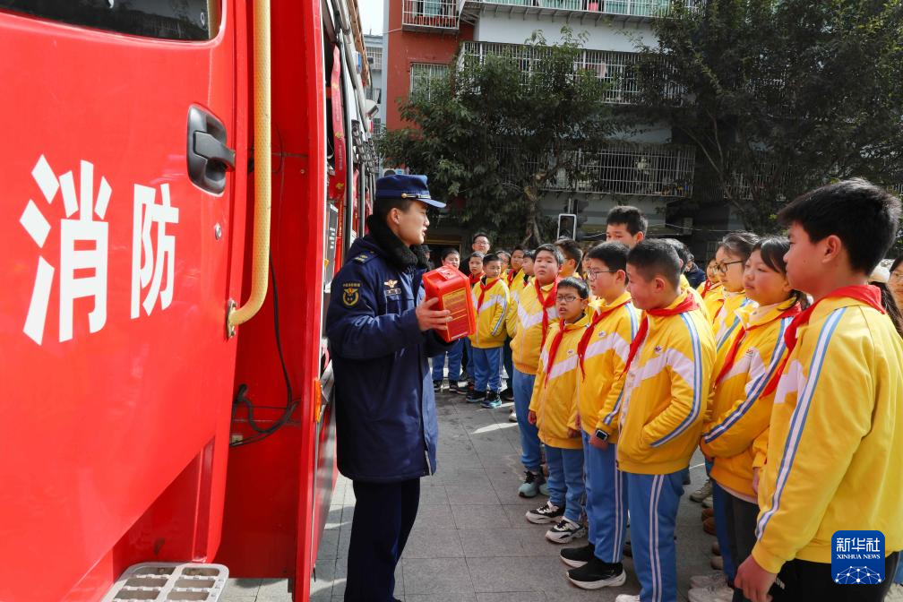 2月16日,在重庆市巫山县朝云小学的开学第一课中,巫山县消防救援大队工作人员为师生们讲解消防相关知识。