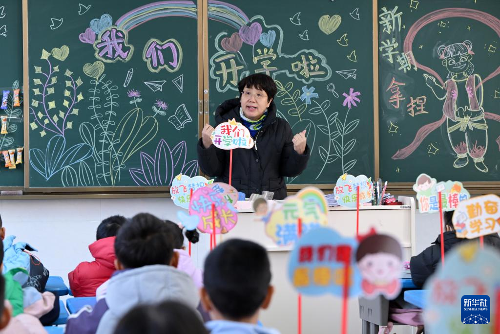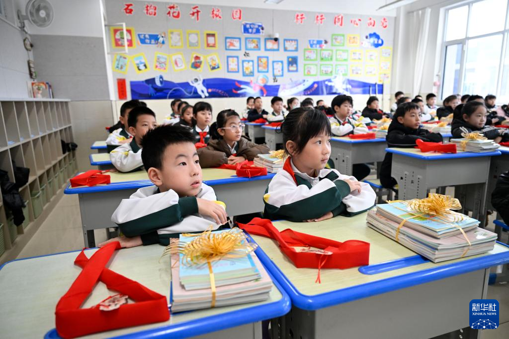 当日,部分地区中小学迎来开学季,学生们返回学校、领取教材,参加开学第一课等活动,开启新学期。