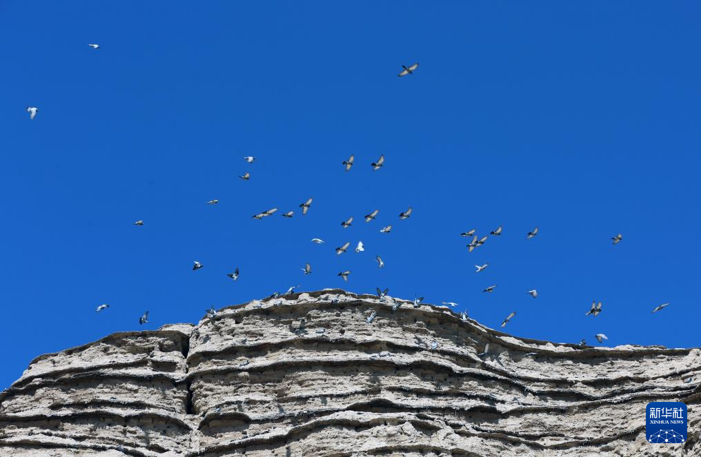 2月25日,在伊拉克巴格达,鸟群飞过杜尔·库里加尔祖遗址的齐古拉塔庙。