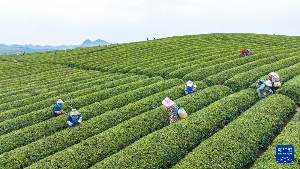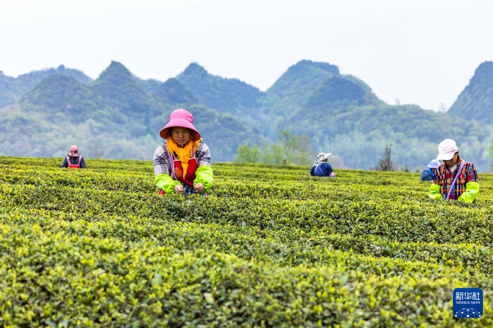3月29日,茶农在贵州省黔西市中坪镇飞蛾社区黄泥屯茶山采摘春茶。