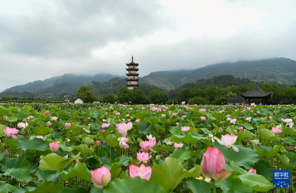 这是6月11日在浙江省金华市武义县柳城畲族镇十里荷花景区拍摄的荷花。