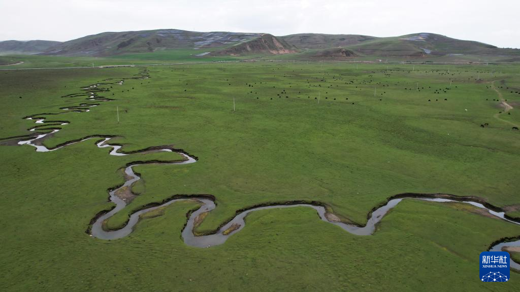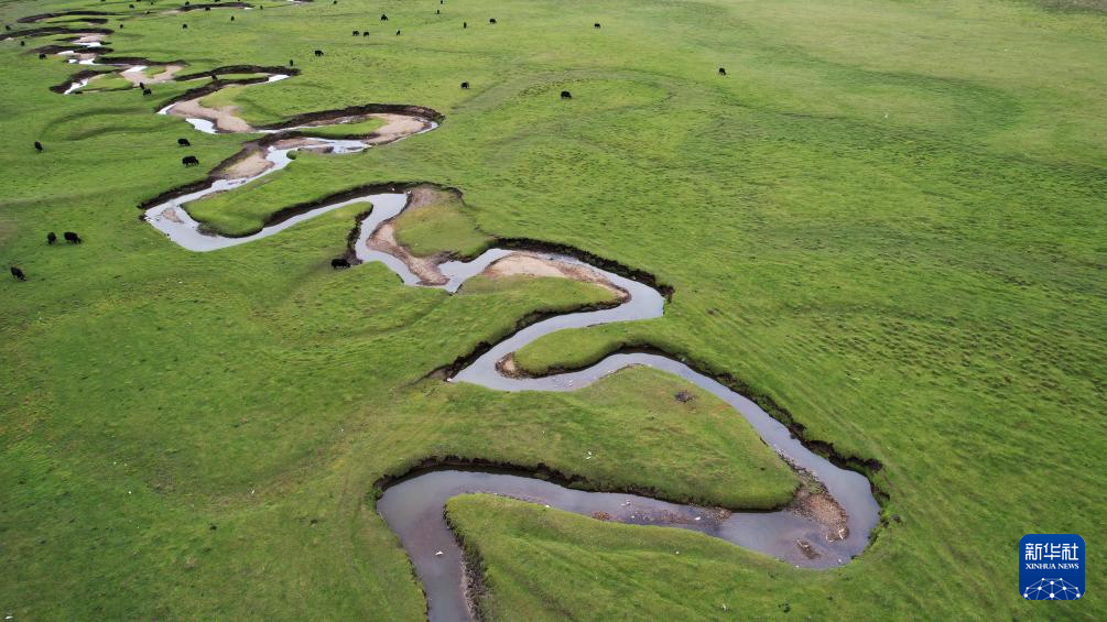 夏日里,位于甘肃省定西市岷县的狼渡湿地草原进入一年中的“最美时刻”,平均海拔2600米的狼渡湿地草原绿意盎然,水草丰茂,九曲十八弯的狼渡溪流蜿蜒其中,与漫步的牛羊、驰骋的骏马一道构成生机勃勃的美丽画卷。