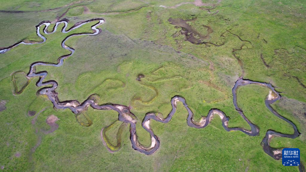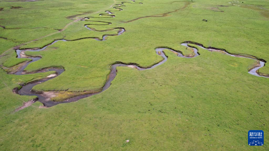 这是6月10日拍摄的狼渡湿地草原风光(无人机照片)。