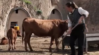 9月16日,重庆市黔江区小南海镇桥梁村古枫寨村民在晒秋(无人机照片)。