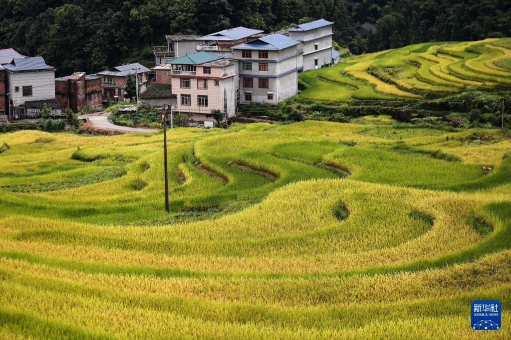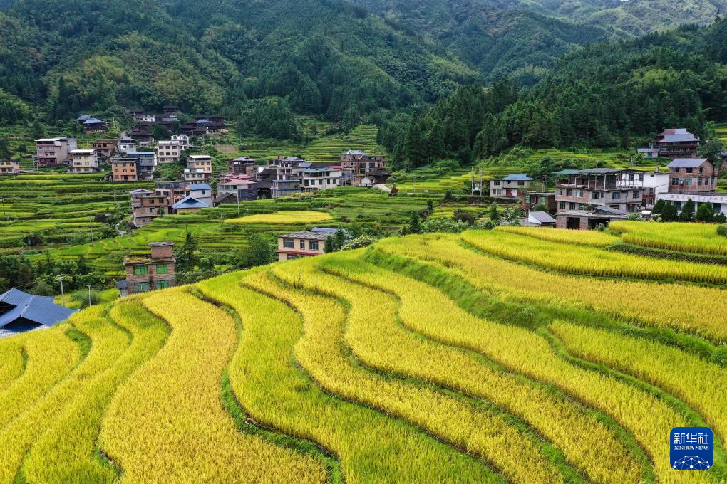 9月15日拍摄的广西融水苗族自治县同练瑶族乡朋平瑶寨与梯田。