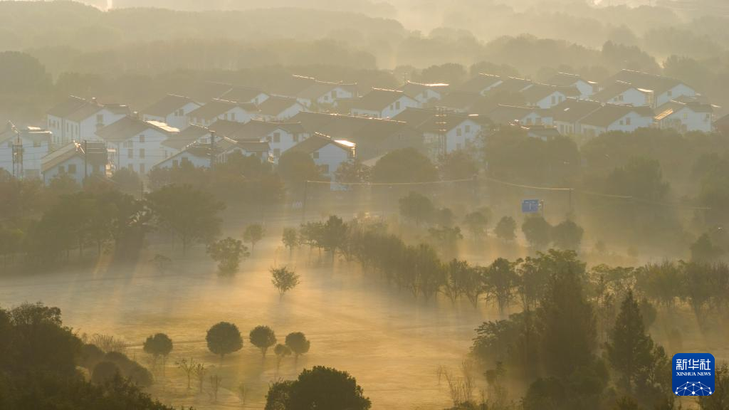 11月15日拍摄的江苏省昆山市周庄镇祁浜村晨景(无人机照片)。
